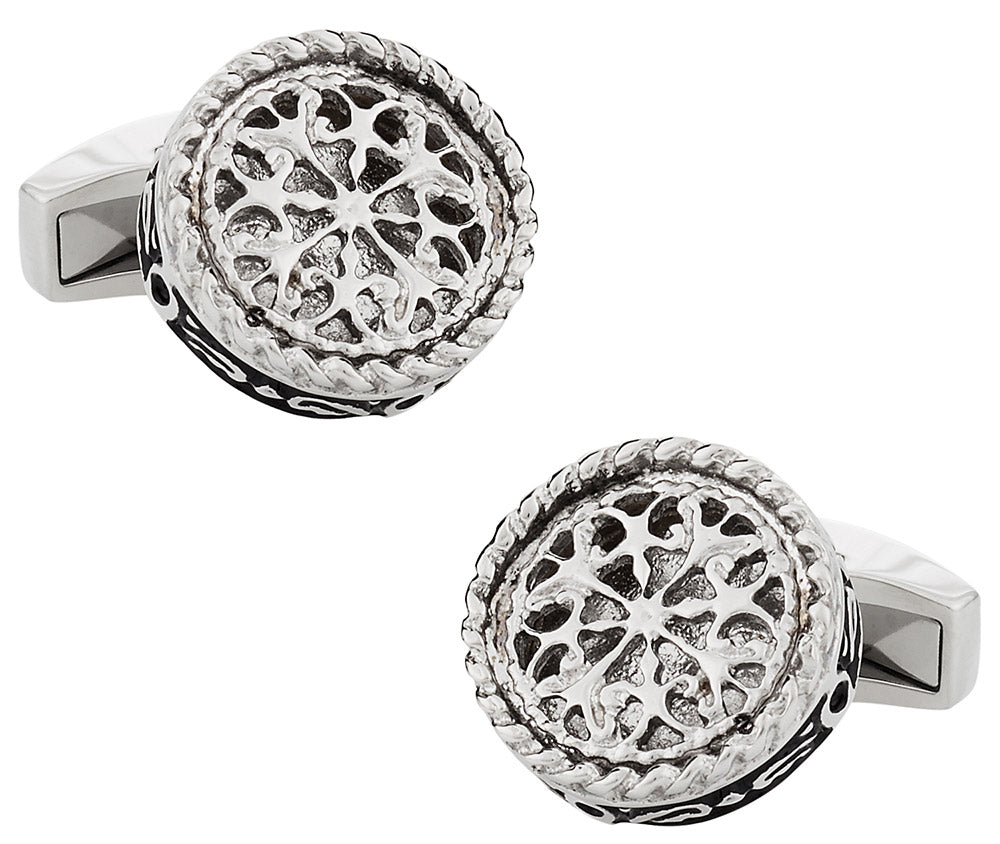 Round Filigree Cufflinks Stainless Steel
